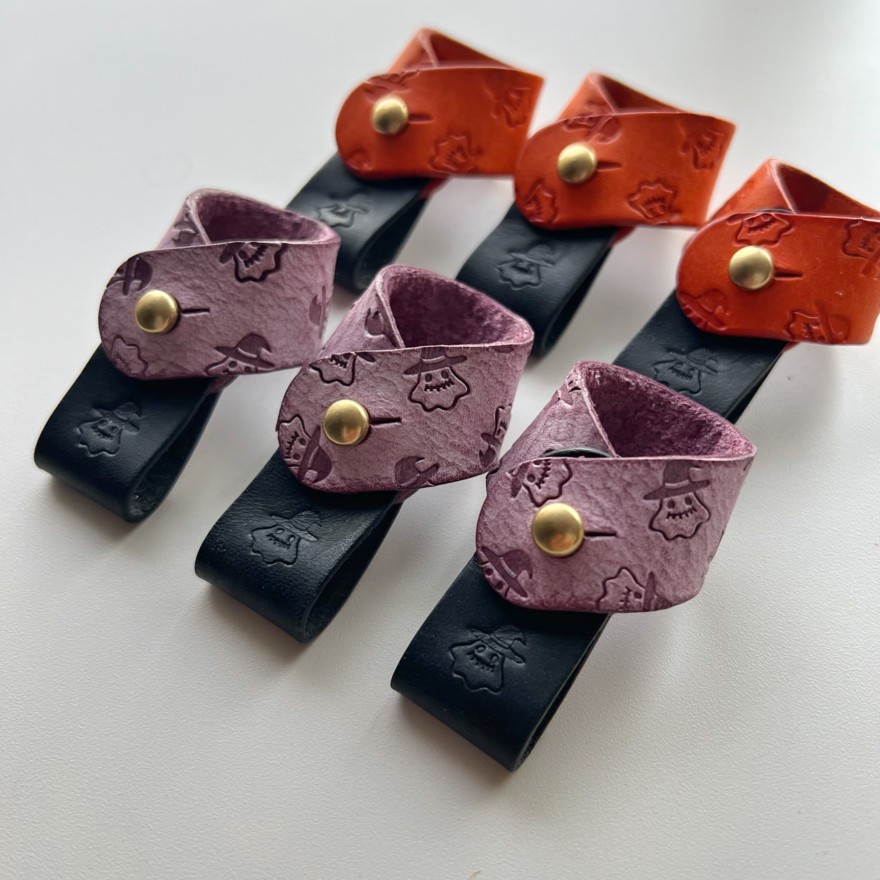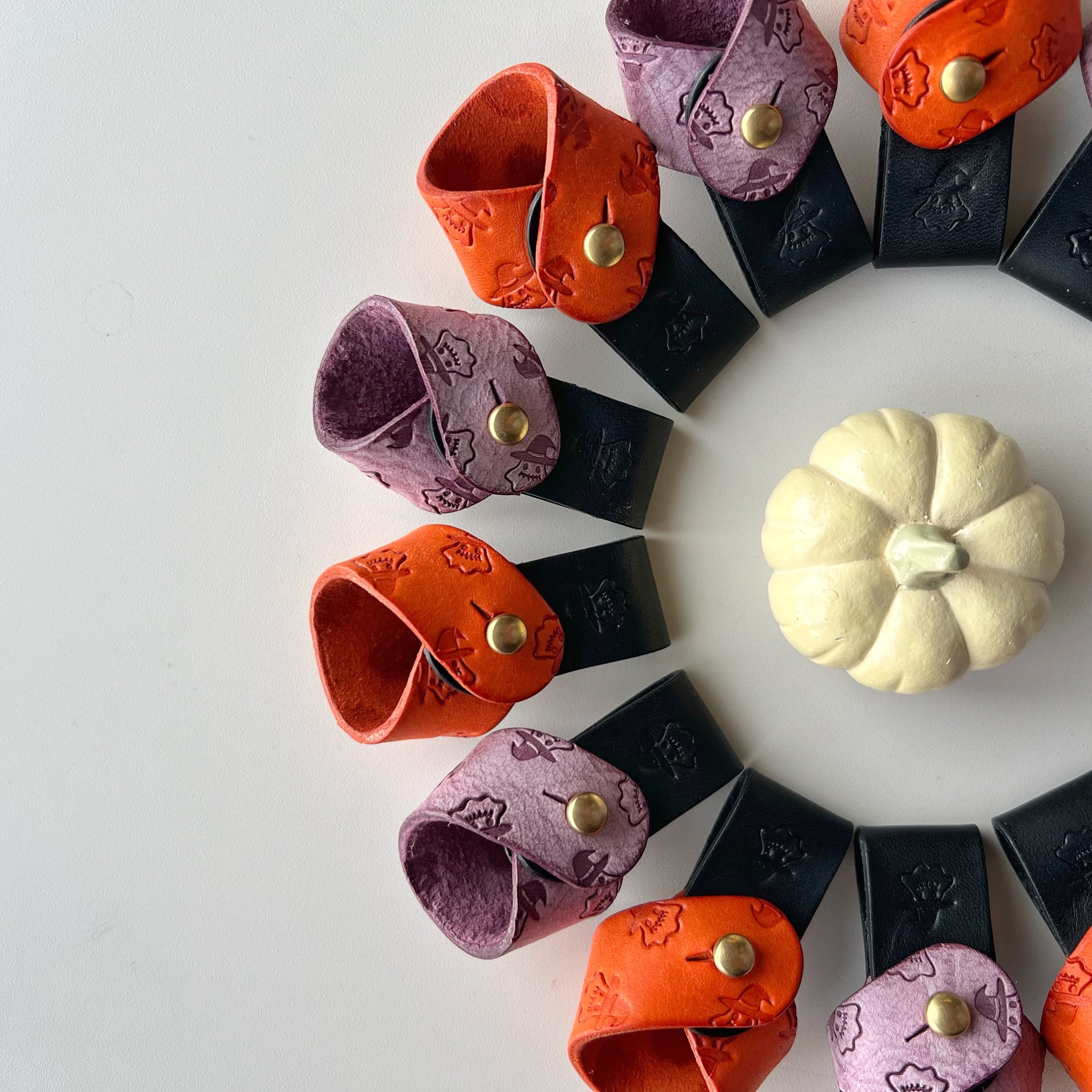 カラーはパープルとオレンジのループカラーに下部分はハロウィンを意識してブラックをチョイス。ブラックパーツは黒いカバンなどに付けると見えなくなり不思議なループに...!ハロウィン期間以外にも使って頂ける配色です。