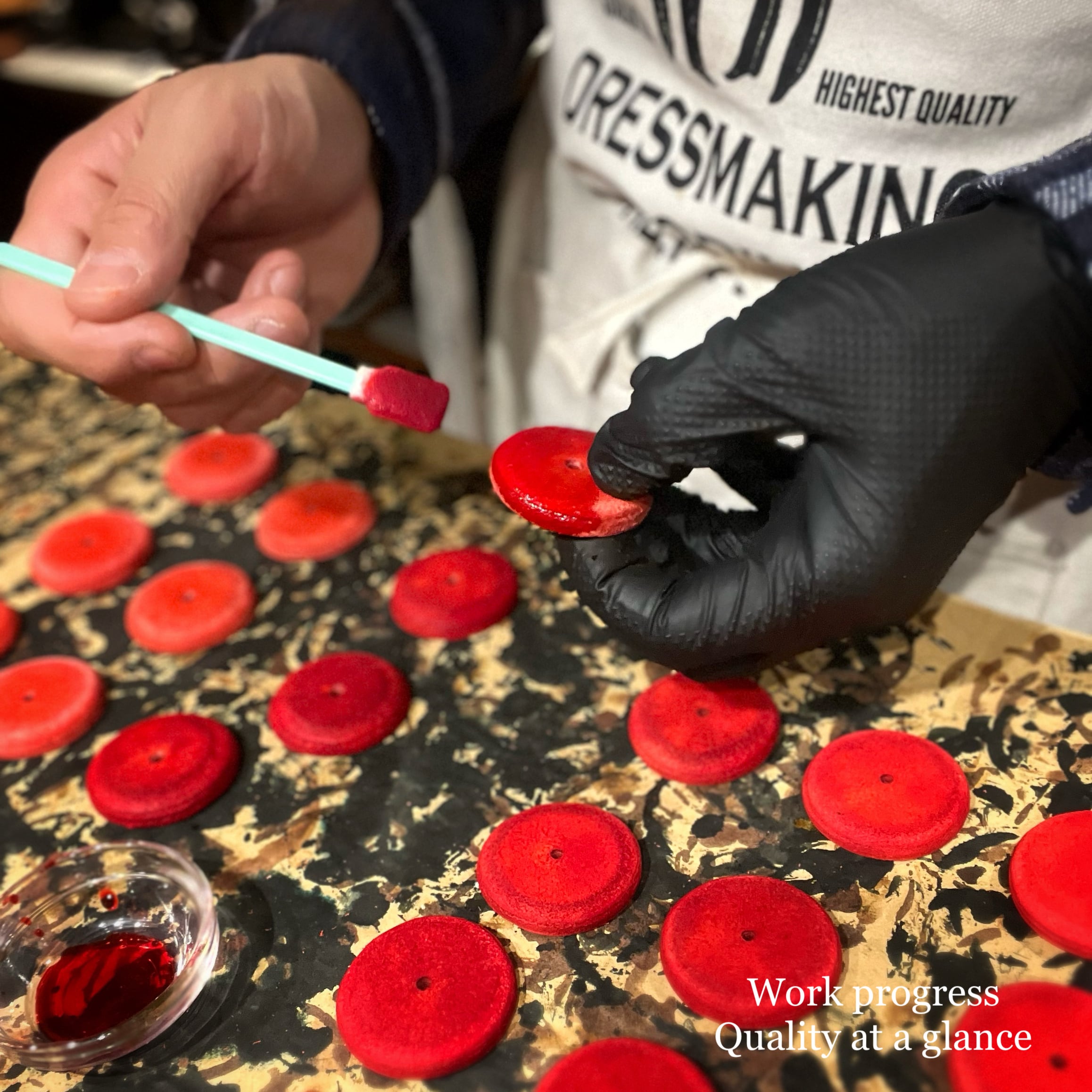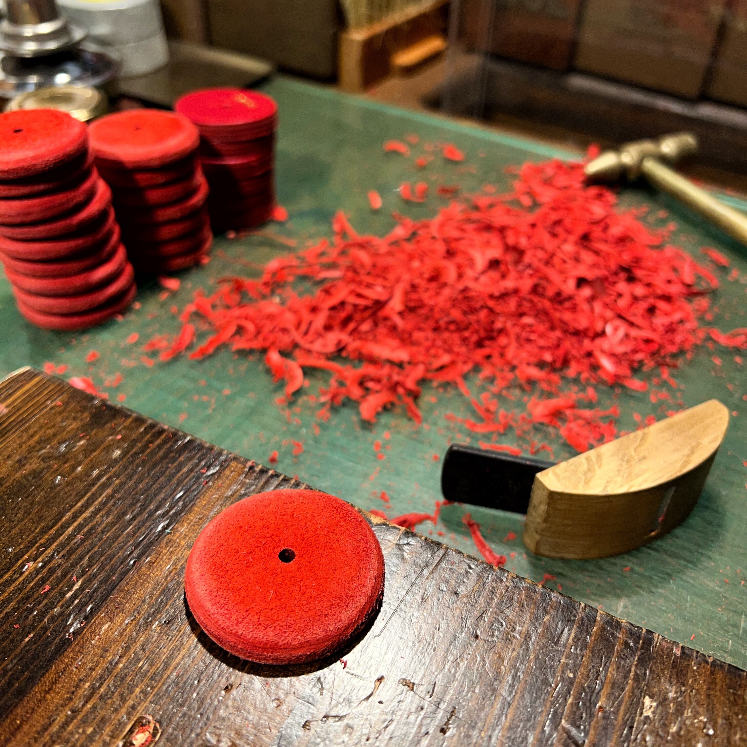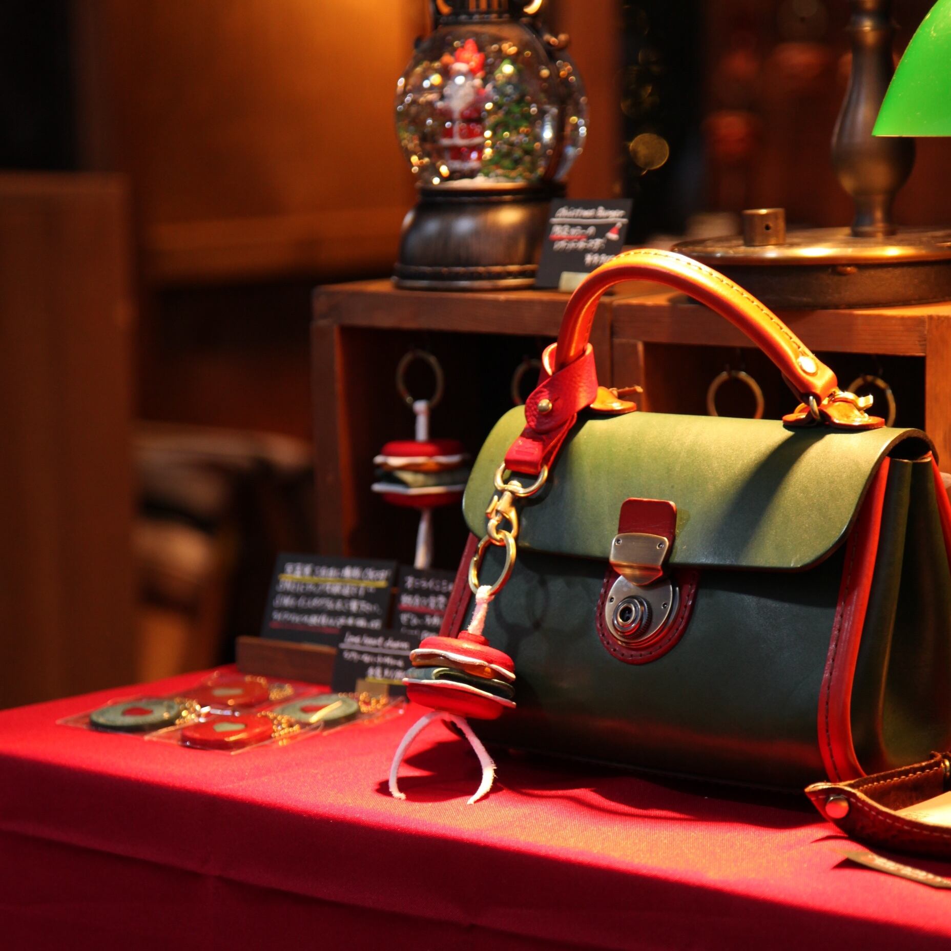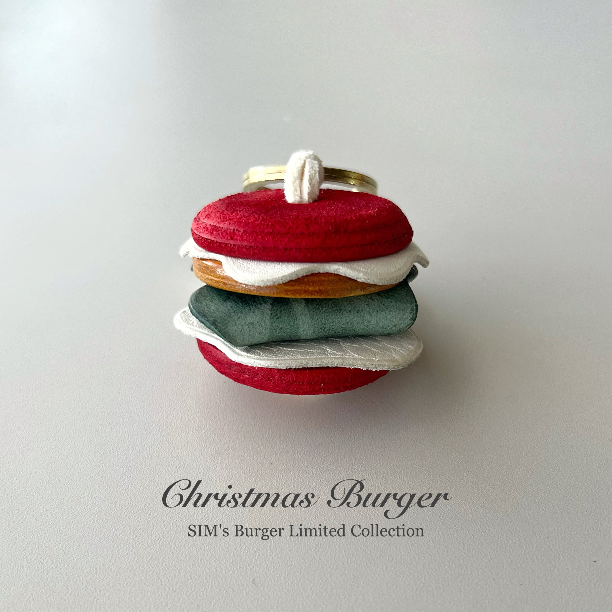 ※クリスマスバーガーのバンズは赤いイタリアンレザーを3枚重ねた上で更に赤色に染色しております。色止め処理をしてありますが、雨に濡れたりすると色落ちや色移りが起こる場合があります。ご注意ください。