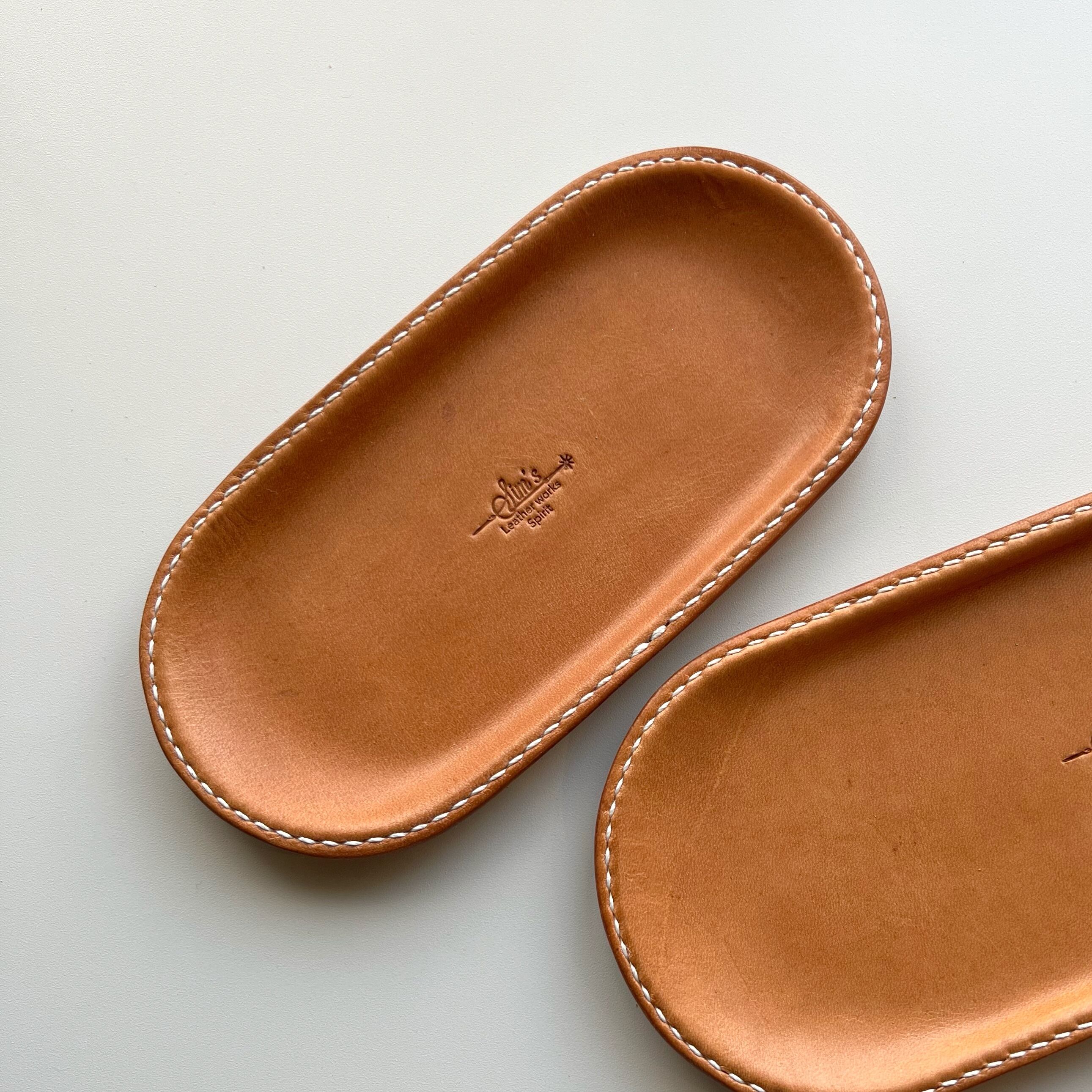 ステンレス製のトレーに革巻きを施したレザートレー。