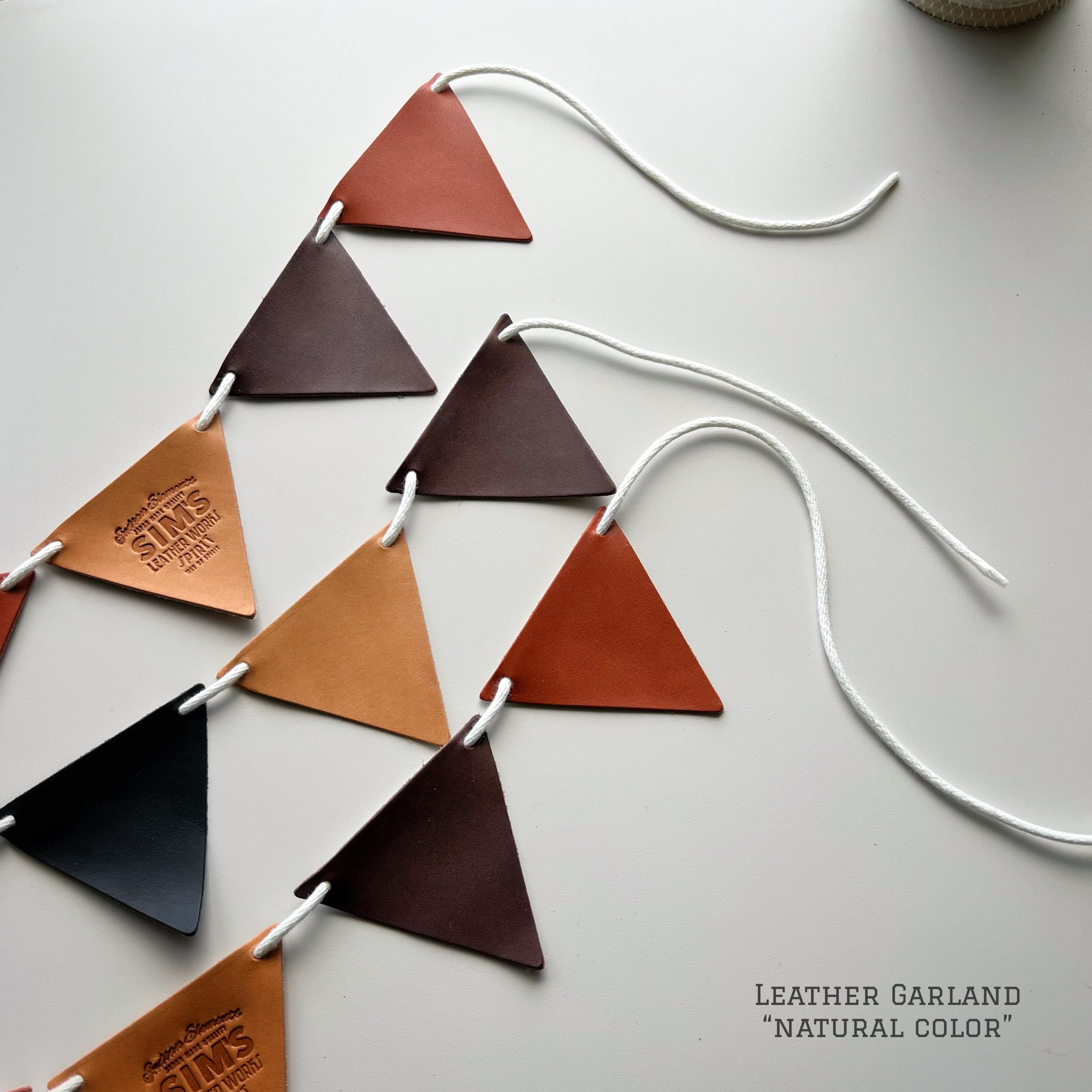 お部屋のインテリアのアクセントにしたり、お気に入りスペースの飾り付けに、キャンプやイベントなどにも、革でできた雰囲気のあるフラッグガーランドはワンランク上の装飾が楽しめます。お好きな場所に使って楽しんでください。