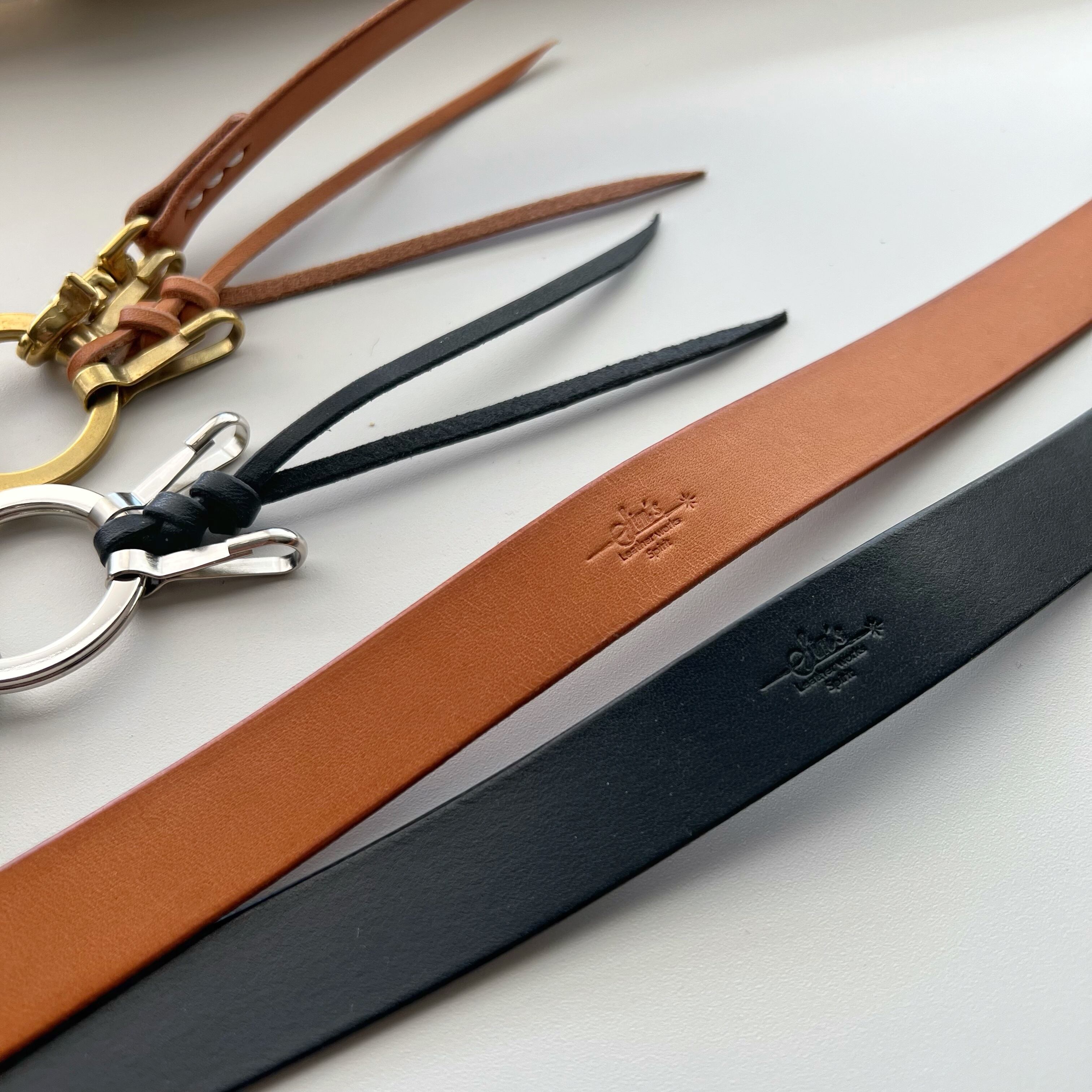オイルレザーのナチュラルとブラックの2種類をご用意。ナチュラルには真鍮金具を、ブラックにはニッケルシルバーの金具を合わせました。