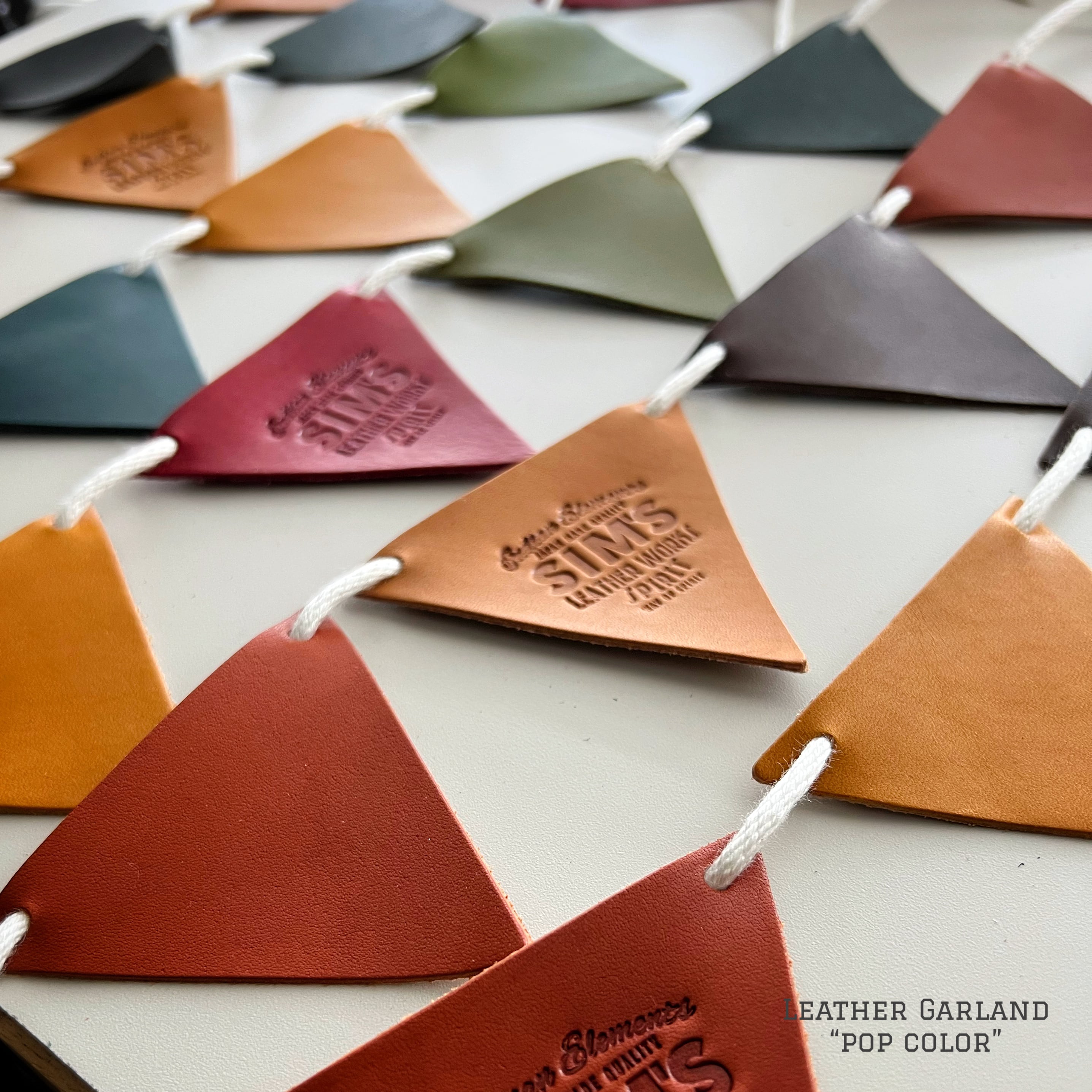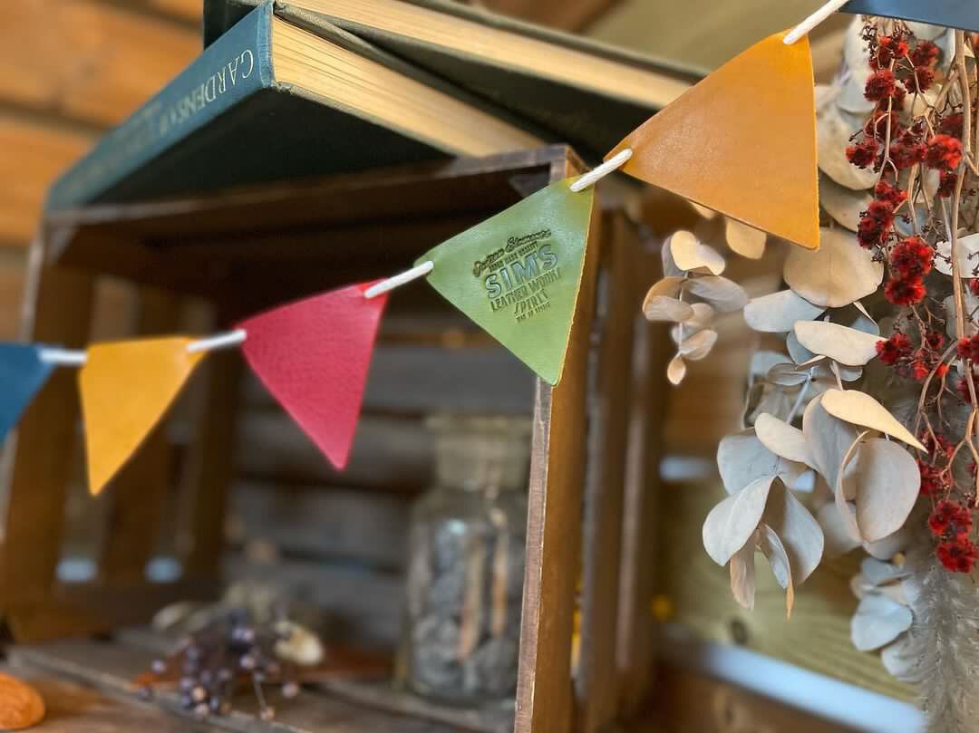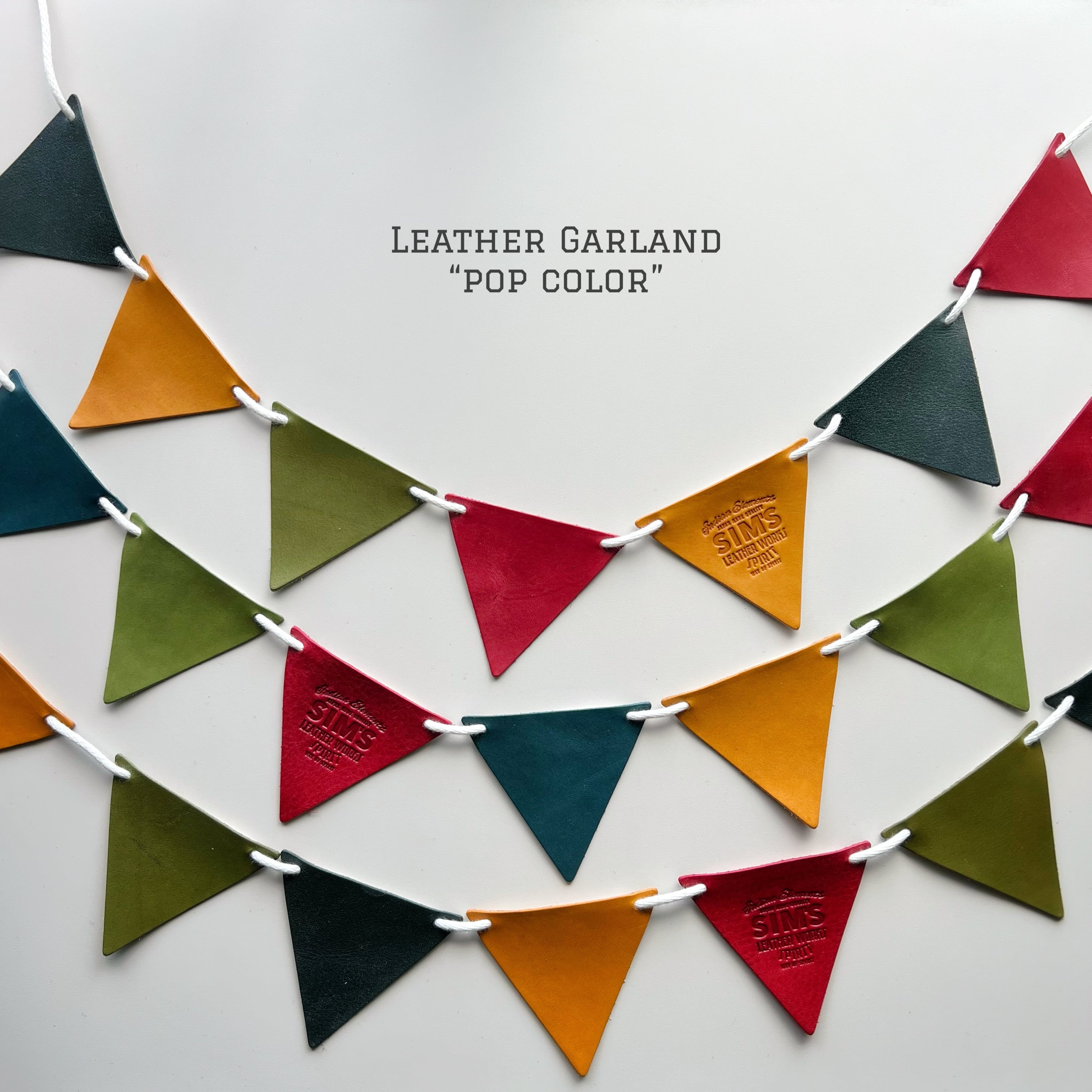 お部屋のインテリアのアクセントにしたり、お気に入りスペースの飾り付けに、キャンプやイベントなどにも、革でできた雰囲気のあるフラッグガーランドはワンランク上の装飾が楽しめます。お好きな場所に使って楽しんでください。
