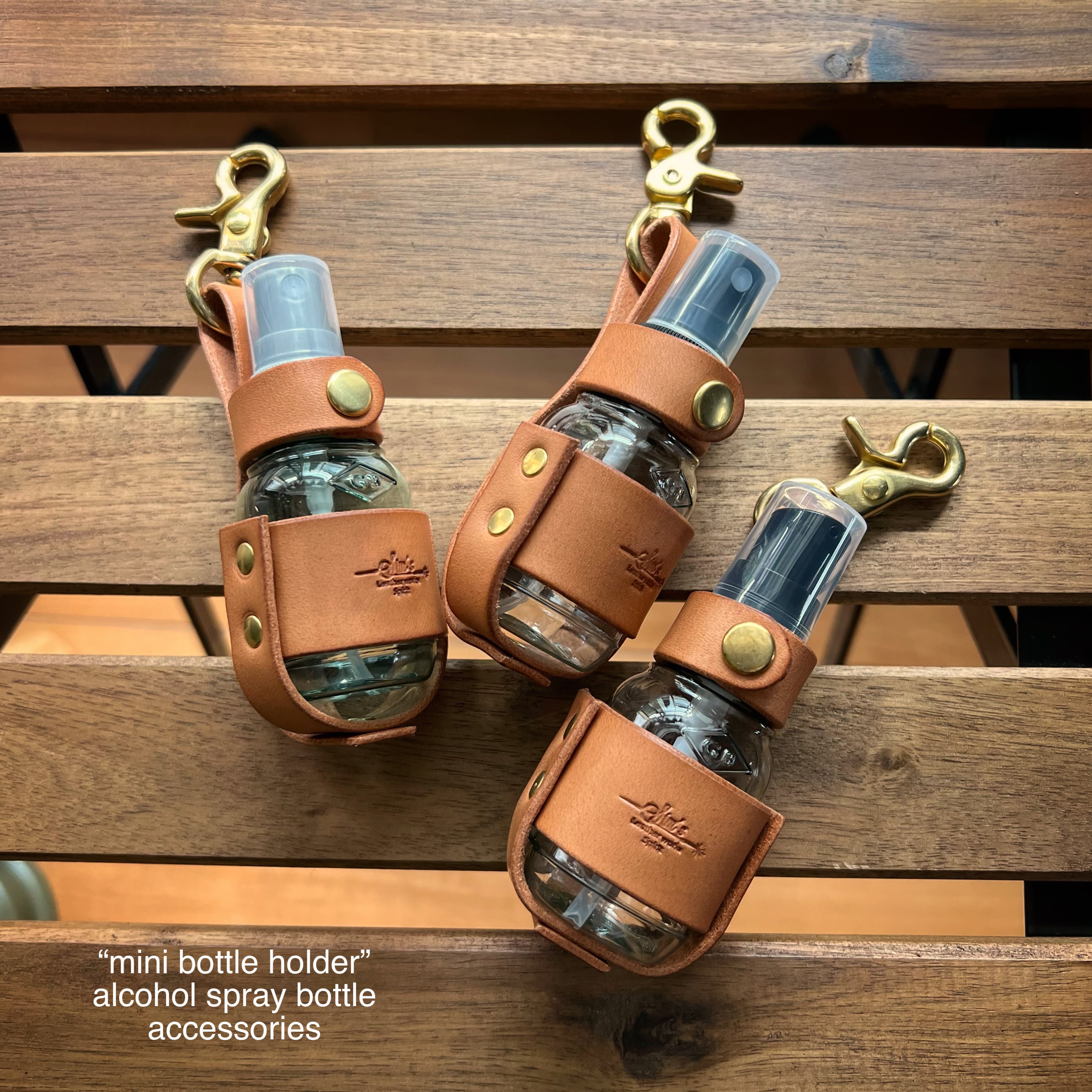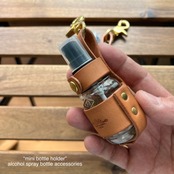 ナスカンでバッグや腰からぶら下げられます。ぶら下げたままスプレーを使えますので、使い勝手もいいです。コロンとしたミニサイズなので、とても可愛いです。ボトルはどこにでもある100円ショップ「Seria」にて販売しているので、ボトルがもしダメになってもご自身で交換可能です。※店舗によっては取り扱いがない場合もあります。また、濃度の濃いアルコール(80%以上)や有機溶剤等はボトルの破損の可能性があるので、入れないでください。