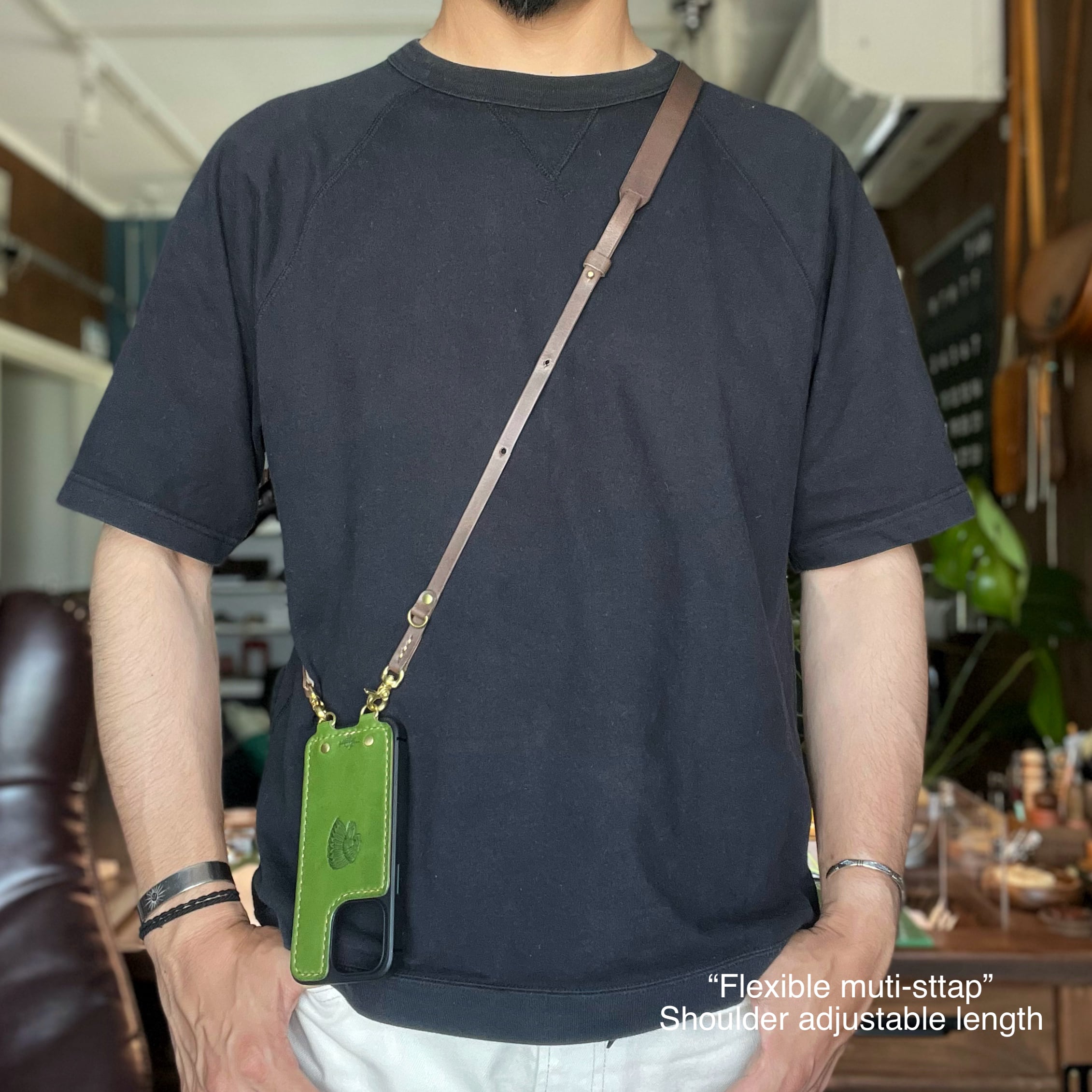 マルチに使えるレザーショルダーストラップです。